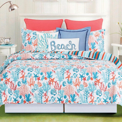 Dream of warm breezes and ocean air as you drift off to sleep in our fine coastal bedding sets, available in a variety of nautical and tropical themes to fit any interior decorating style. Our bundles start with bedspreads, comforters, and linens, complemented by ultra-cozy quilts and throws, plus eye-catching accent pillows.