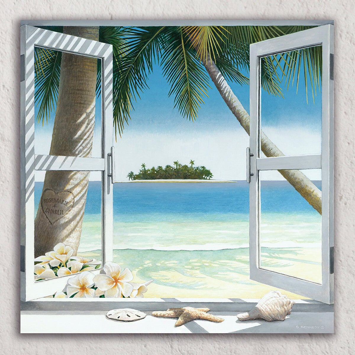 Compare Choose Options Island Romance Personalized Stretched Canvas Art - Large Exclusive - Stretched canvas personalized with your names in the heart on the palm tree. Personalize heart with two names up to 12 characters each. Ready to hang. Made in the USA. Measures 24"W x 1 ÂĽ"D x 24"H. View Details Please Select an option. Old Price: Old Price $142.95 Sale Price: $119.95 119.95 Island Romance Personalized Stretched Canvas Art - Large ,Quantity: Decrease Quantity: Increase Quantity: