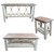 - Coffee table: 41.75"W x 23.5"D x 18"H; Sofa table: 42.5"W x 11"D x 31"H; End tables: 14"W x 22"D x 23"H each