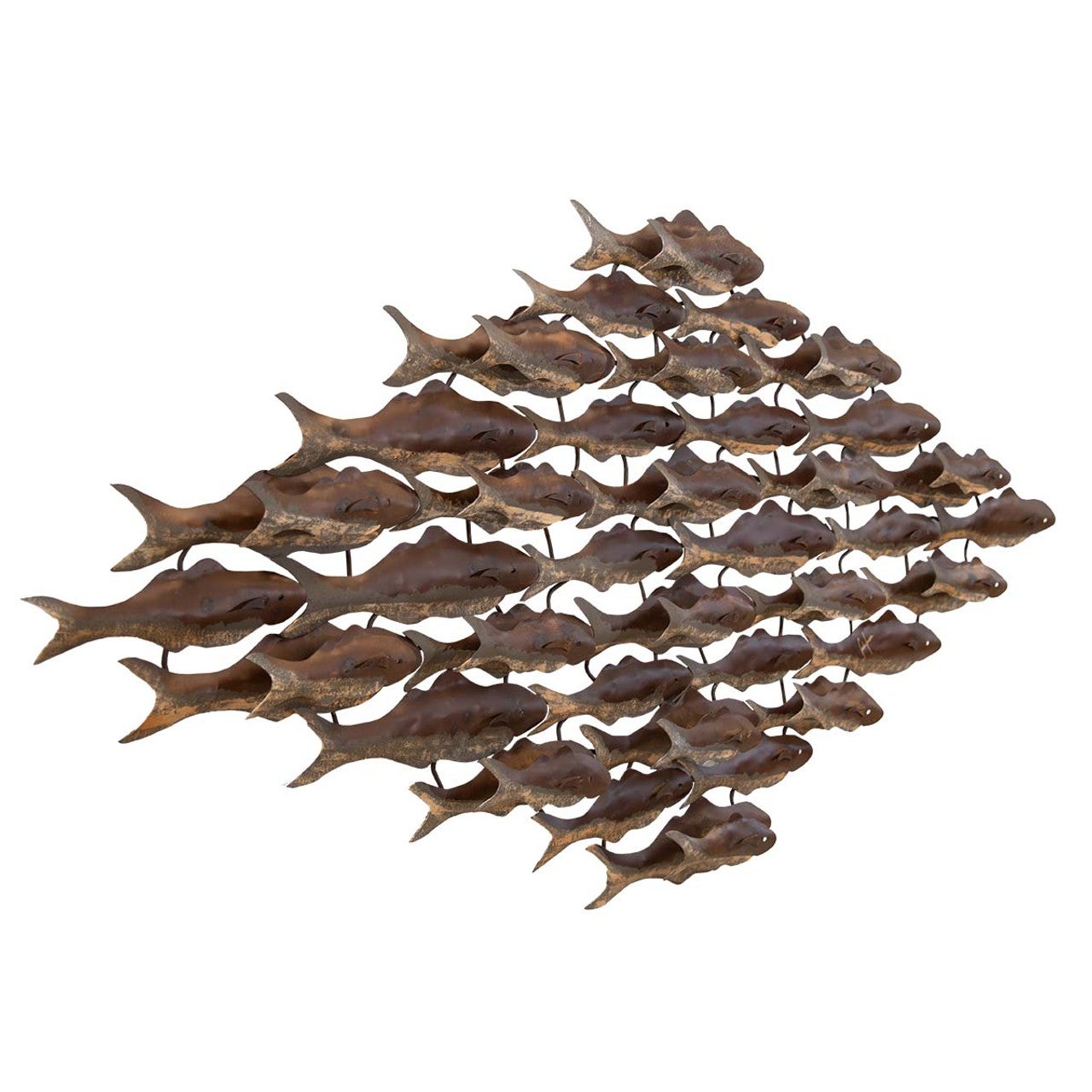 The Ocean Academy Wall Art depicts a lively school of fish in motion, crafted in dimensional metal with layered detail and texture. Perfect focal point for your seaside home it brings playful movement and ocean charm to your walls.
